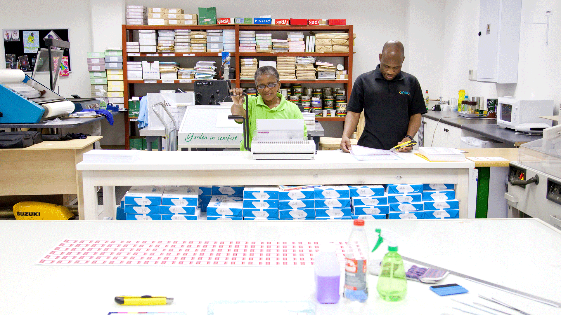 At Minuteman Press they can produce anything you can put a name, image, or logo on! Their extensive range of services includes printing, copying, document reproduction and graphic design services as well as binding, embossing, foil stamping and saddle stitching. Their product offering includes envelopes, flyers, invitations, labels, manuals, menus, price lists and presentation folders, to name but a few. All businesses use printed matter in their daily operations. As a supplier of products that are handed out, mailed, written on and eventually thrown away, only to be reordered and replaced, this means that Minuteman Press franchisees’ repeat business is assured.